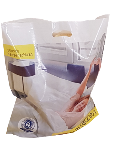 Im Prinzip ist die Griffloch-Tüte ein einfacher PE-Beutel mit Grifflochstanzungen.