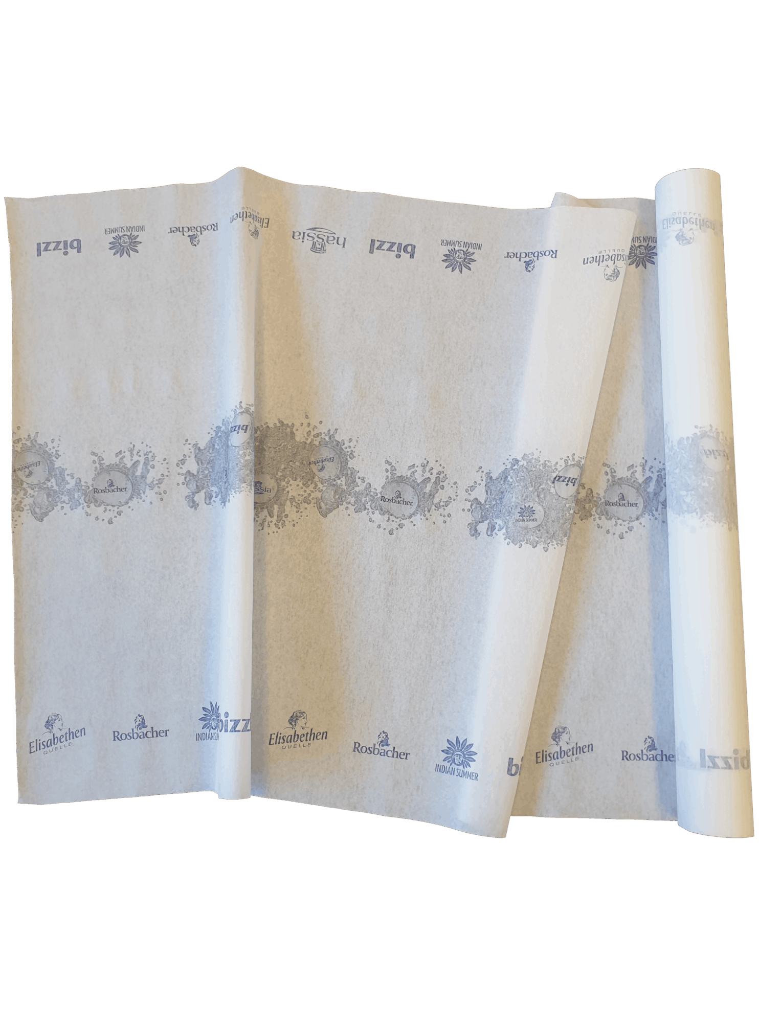 Besonders wirtschaftlich und bevorzugt im Innenbereich gefragt, sind unsere Papiertischdecken. Die Krepppapier-Inflameable Tischdecken können dank der B1 Qualität auch in Großarenas eingesetzt werden, wo diese Brandschutzklasse oft gefordert wird. Wie auch bei der Folie mit Leinenprägung wird das Papier durch Krepphaptik deutlich aufgewertet. Auch hier sind Drucke mit bis zu 8 Farben im Flexodruck möglich. Ein nachwachsender Rohstoff, der als Teil der Kreislaufwirtschaft verantwortungsvoll mit unserer Natur umgeht.