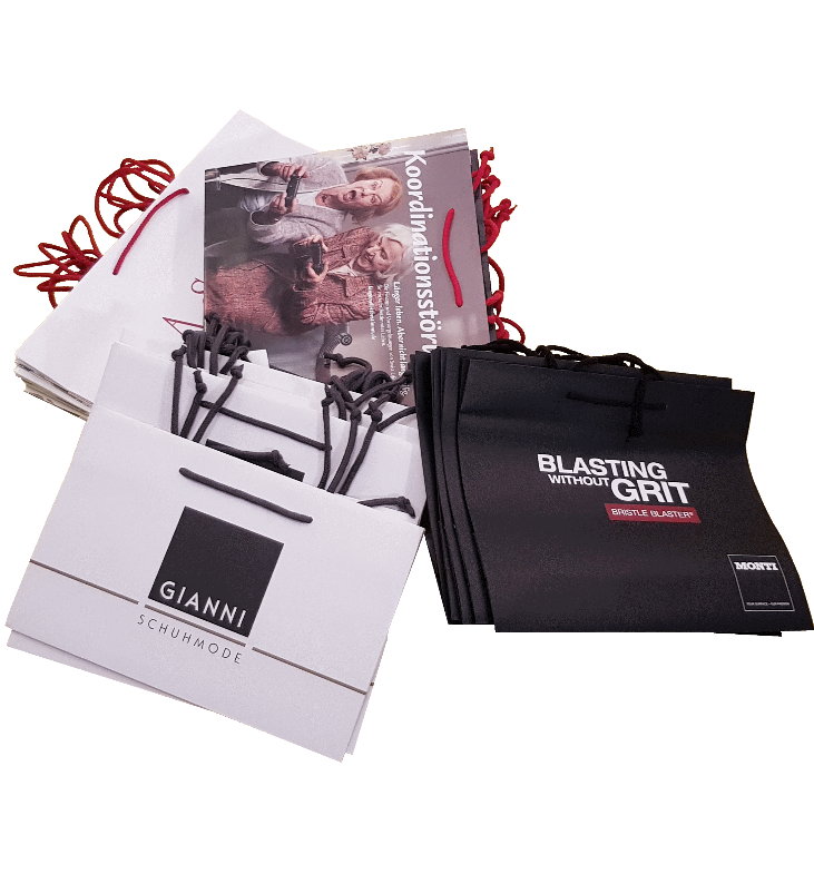 Die exklusiven Luxus-Papiertaschen eignen sich für alle möglichen Einsatzgebiete, Produkte und Branchen. Es gibt sie in allen erdenklichen Formaten. Egal ob Modegeschäfte, Boutiquen, Schuhgeschäfte, Sportgeschäfte, oder auch sehr beliebt für den M esseeinsatz als Messetasche! Alle haben mit dieser Tasche eine exklusive Serviceverpackung für Ihren Kunden und tragen ein professionelles und exklusives Image nach außen. Aber auch für Industrie als Messetasche, Give-Away oder für den Fabrikverkauf ideal geeignet.