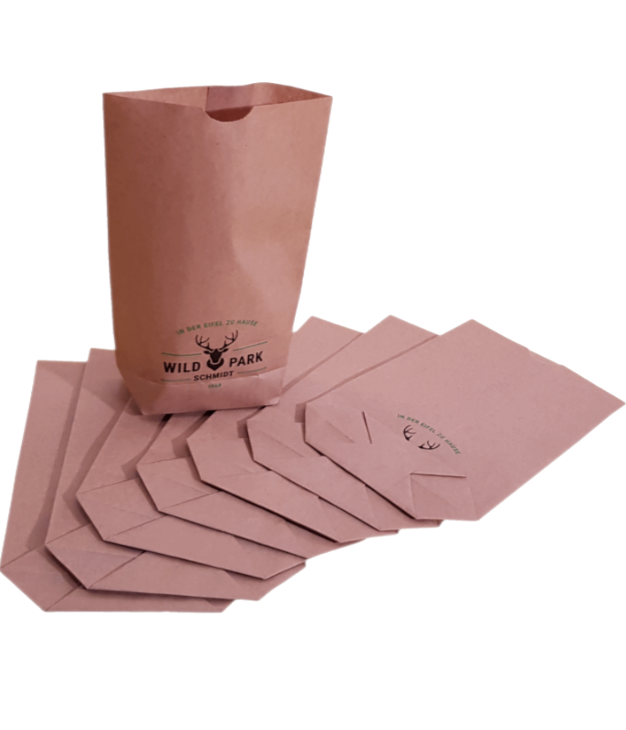 Die Kreuzbodenbeutel sind sozusagen die abgespeckte Form des Blockbodens. Der Kreuzbodenbeutel ist somit eine Mischung aus einfachem Flachbeutel und Blockbodenbeutel. Der Kreuzboden geht über seine spitz zulaufenden Ecken im 45 Grad Winkel in einen Flachbeutel über. Dieser ist wie ein Flach- und Faltenbeutel auf der Rückseite verleimt. Perfekt geeignet für z.B. Schüttgüter! Ob als Tierfutter-Beutel im Wildpark oder als „Naschtüte“ für Süßigkeiten. Die Beutel verfügen über eine Daumenaussparung, auch Daumenaushub genannt, für ein einfacheres und bequemes Handling. Bis zu dreilagige Papiere für höchste Beanspruchungen in unterschiedlichste Formate können frei gewählt werden ...