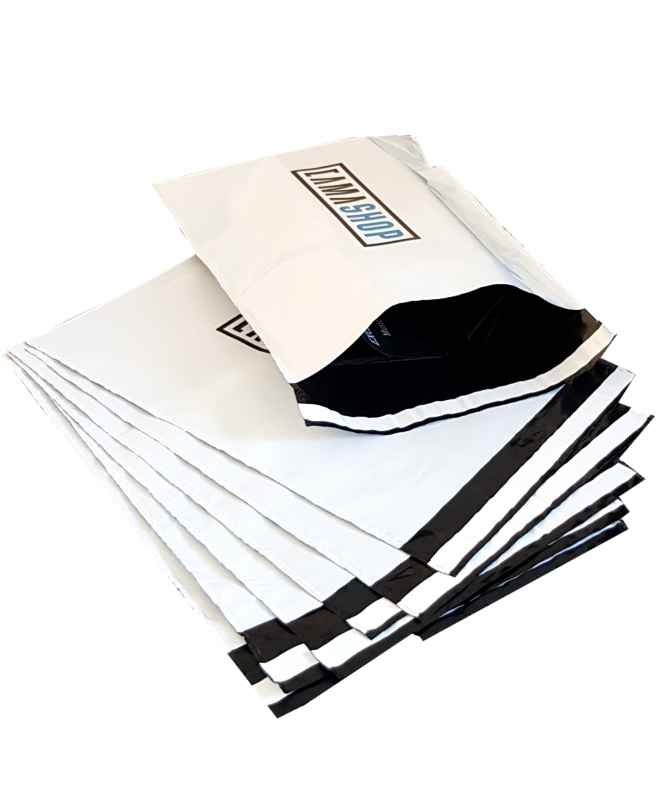 Die Versandtaschen oder Versandbeutel aus LDPE-COEX schwarz-weiß Folie, werden mit wasserbasierenden Farben bedruckt. Folienbeutel sind robust und leichter als alternative Versandverpackungen aus Papier. Und werden bei einem geringerem Material- und Energieeinsatz hergestellt als beispielsweise Papier. Die Postversandtaschen aus Folie sind somit umweltfreundlich.
