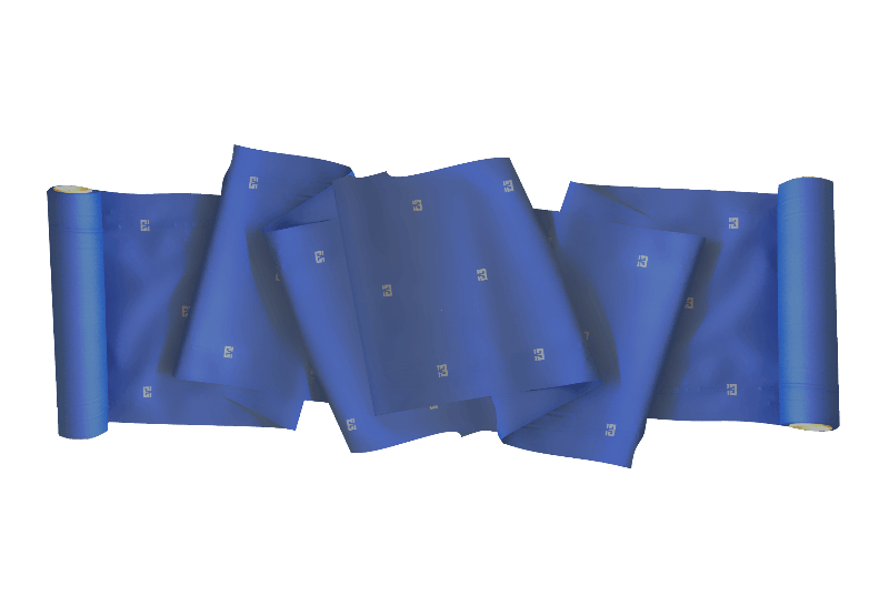 | 120 cm x 5 m | Airlaid-Vliesstoff weiß eingefärbt Airlaid-Vliesstoff blau eingefärbt | 60 g/m² | 120 Rollen / Eurotainer |