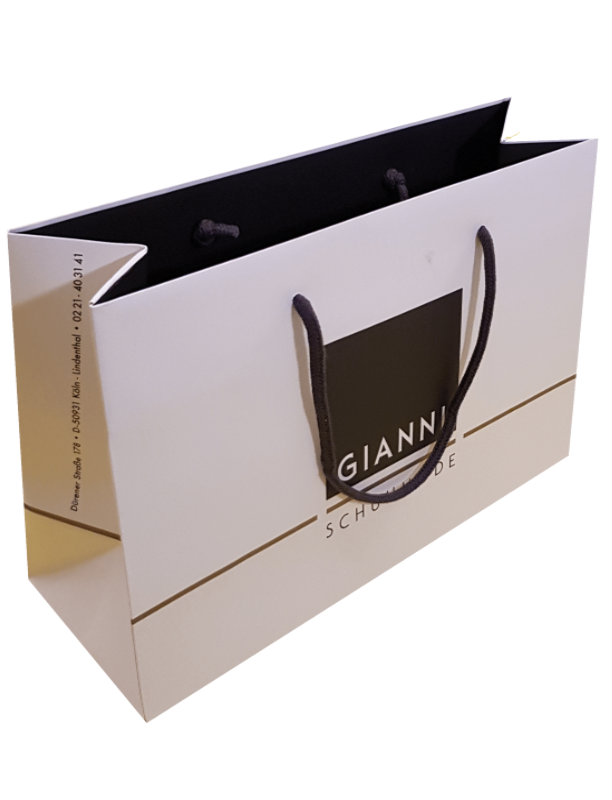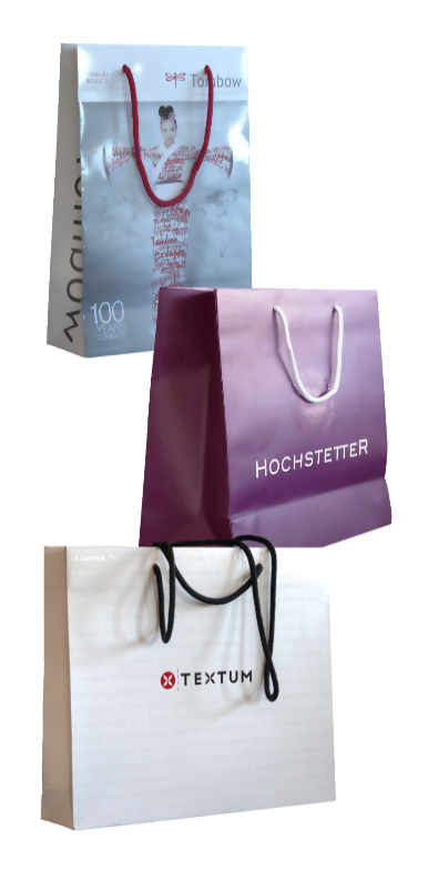Die exklusiven Luxus-Papiertaschen eignen sich für alle möglichen Einsatzgebiete, Produkte und Branchen. Es gibt sie in allen erdenklichen Formaten. Egal ob Modegeschäfte, Boutiquen, Schuhgeschäfte, Sportgeschäfte, oder auch sehr beliebt für den M esseeinsatz als Messetasche! Alle haben mit dieser Tasche eine exklusive Serviceverpackung für Ihren Kunden und tragen ein professionelles und exklusives Image nach außen. Aber auch für Industrie als Messetasche, Give-Away oder für den Fabrikverkauf ideal geeignet.