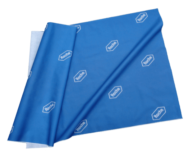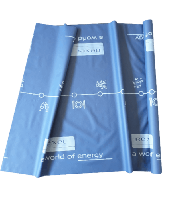 Die Tischdecken/Werberollen aus Vliesstoff sind vollflächig bedruckbar. Ein randloser Druck ist mit Hilfe einer Material-Besäumung zu realisieren. Zu beachten ist insbesondere der Stegbruch nach jedem Druck-Rapport beim Einsatz von Druckplatten. Der Einsatz von Sleeves kann diese Thematik umgehen. Jedoch sind Sleeves teuerer als Klischees...